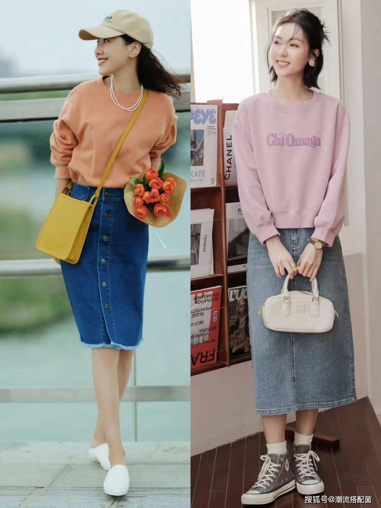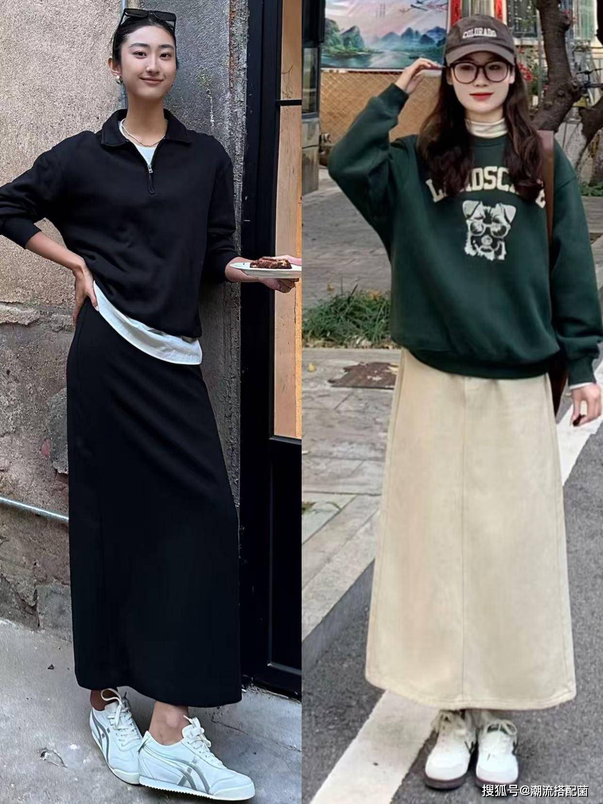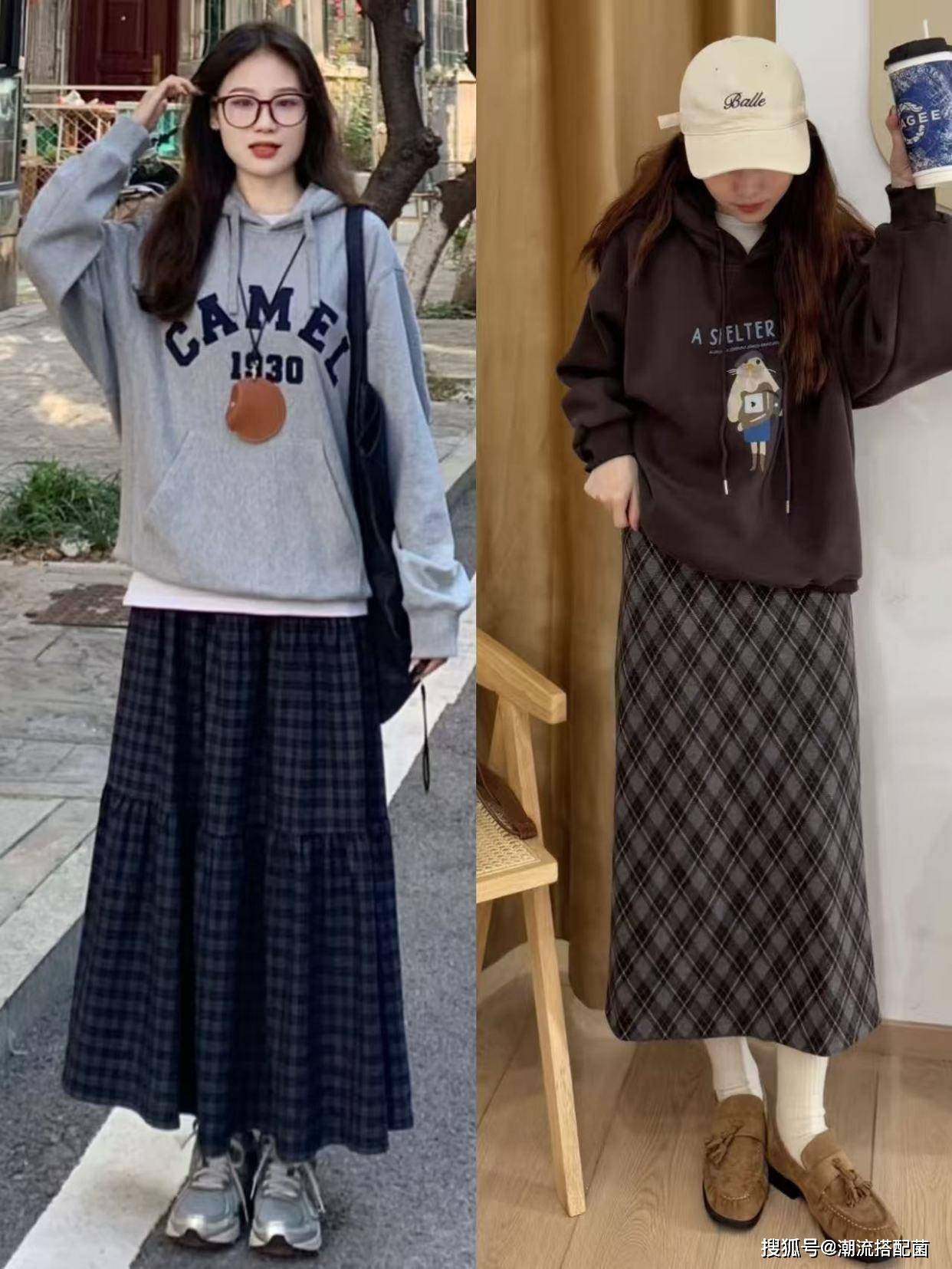 “卫衣+半身裙”大火潮流搭配菌