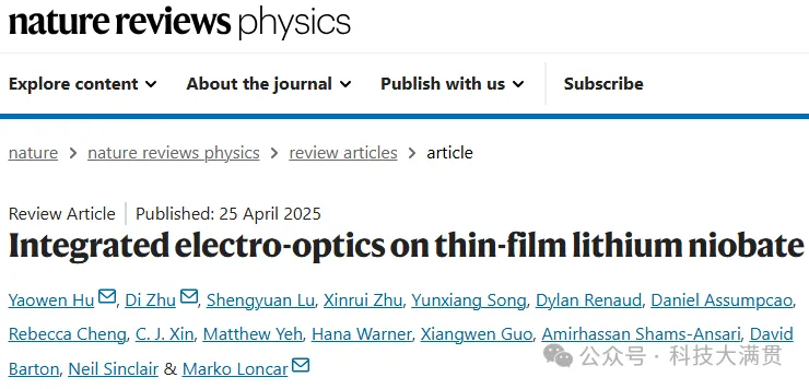 2018年从清华大学本科毕业后,他选择到美国哈佛大学读博(大三的暑研就是在哈佛),师从薄膜铌酸锂光子学领域的先驱,也是本文的合作者Marko Lončar。在Marko Lončar的课题组,胡耀文同样表现出了杰出的科研能力,2021年,年仅25岁的他便以第一作者的身份在顶刊Nature上发表了(Nature最年轻中国学者一作是当年22岁的曹原)关于一类全新的光学器件——频率的移相器和分束器的重要成果。胡耀文在Marko Lončar组也是相当高质高产的,即使后面离开课题组后,两位还是多次合作,Marko Lončar也曾高度评价胡耀文的优秀。去年,胡耀文还以第一作者兼共同通讯作者的身份与Marko Lončar等人合作在《Nature Reviews Physics》(自然·综述·物理)上发表关于 “薄膜铌酸锂集成电光学”的综述文章。