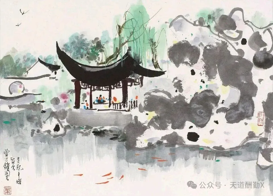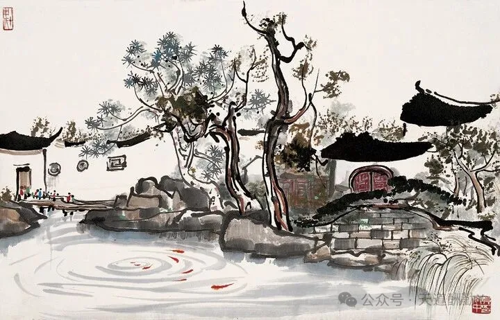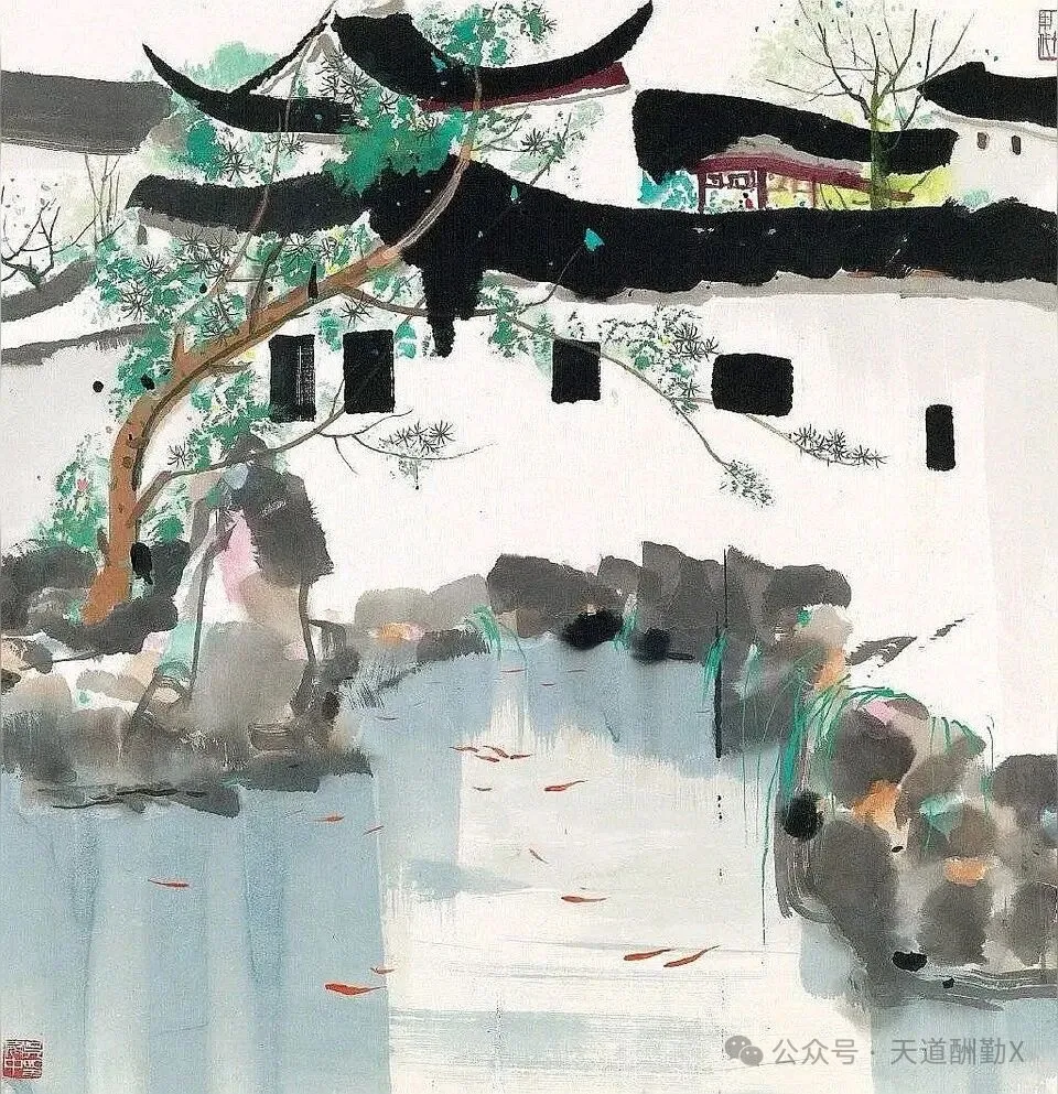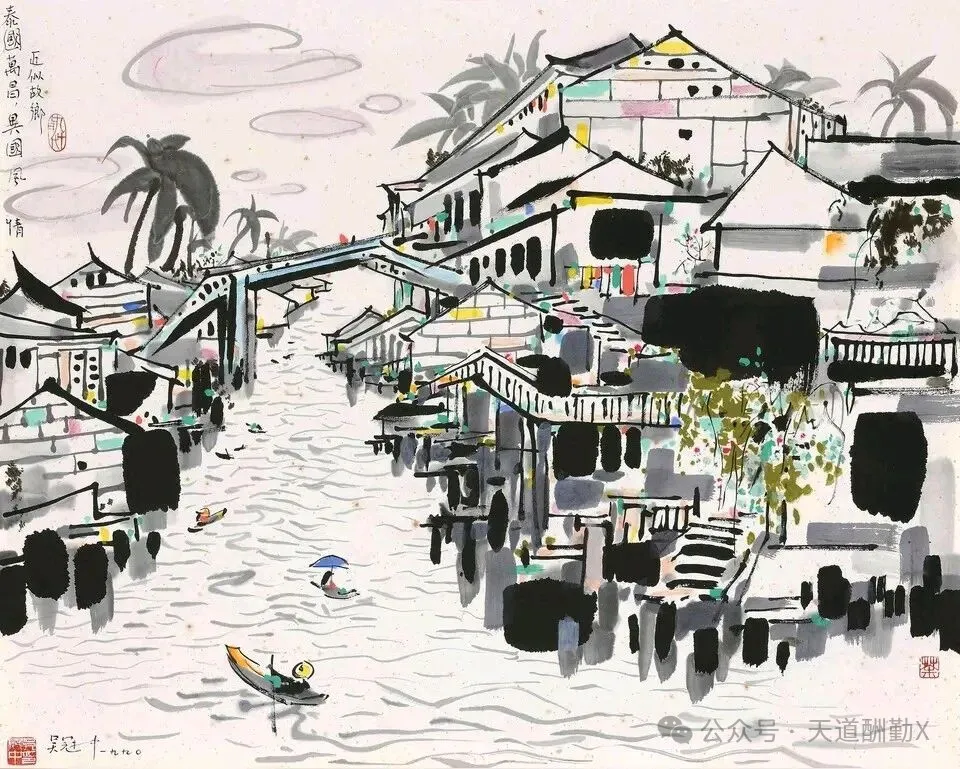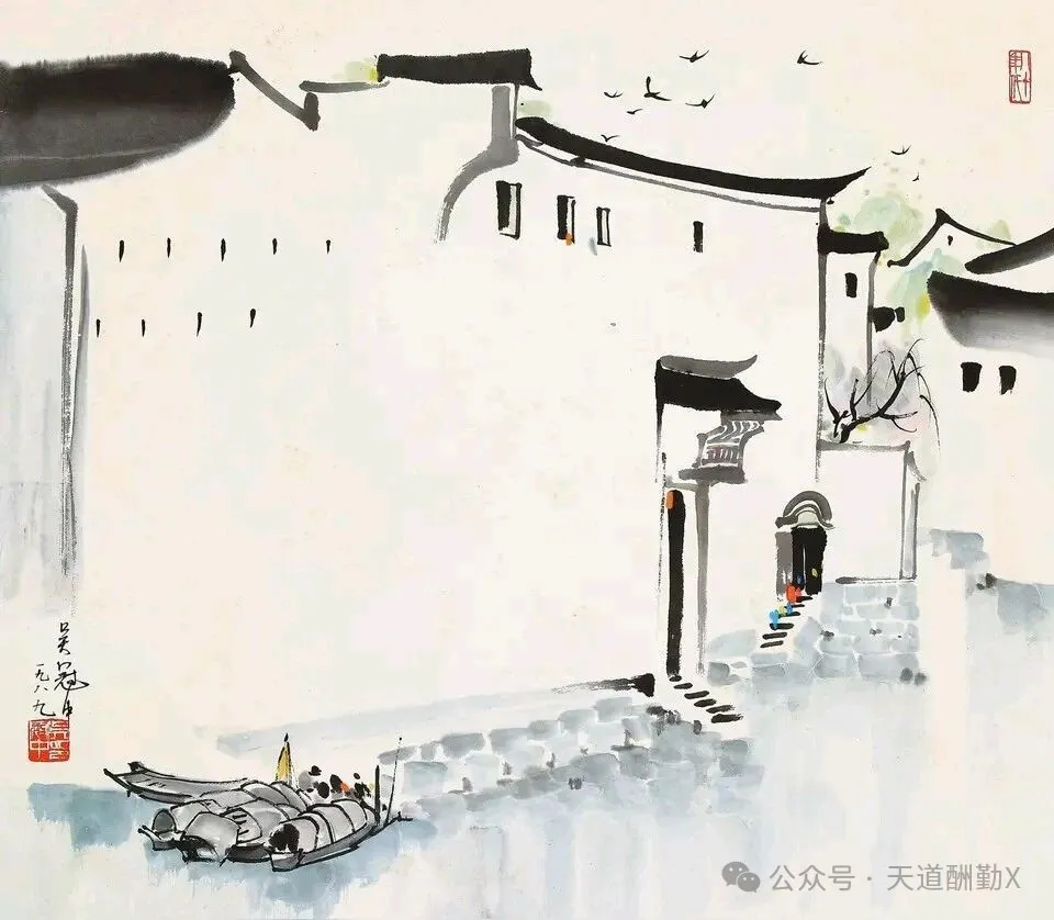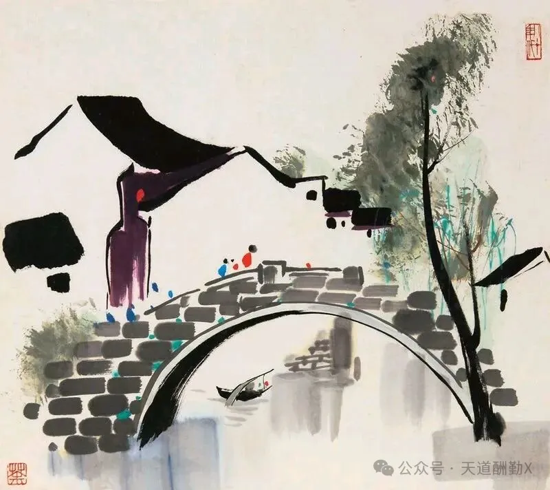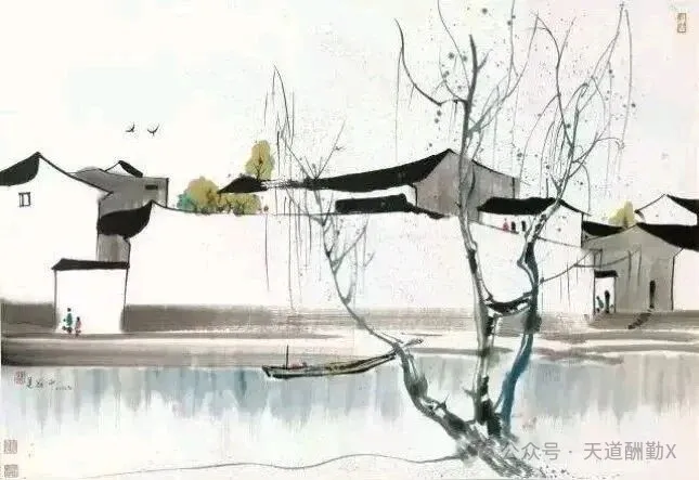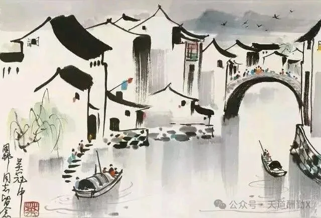 提起江南,总绕不开小桥流水、白墙黛瓦的温婉,而吴冠中以国画笔墨为骨,揉入现代艺术的审美,将江南水乡的美,画成了刻在国人心底的诗意。他的江南水乡系列国画,没有繁复的工笔描摹,却以极简的线与色,勾勒出江南最动人的魂,一笔墨,一汪水,皆是道不尽的水乡情、故乡愁。