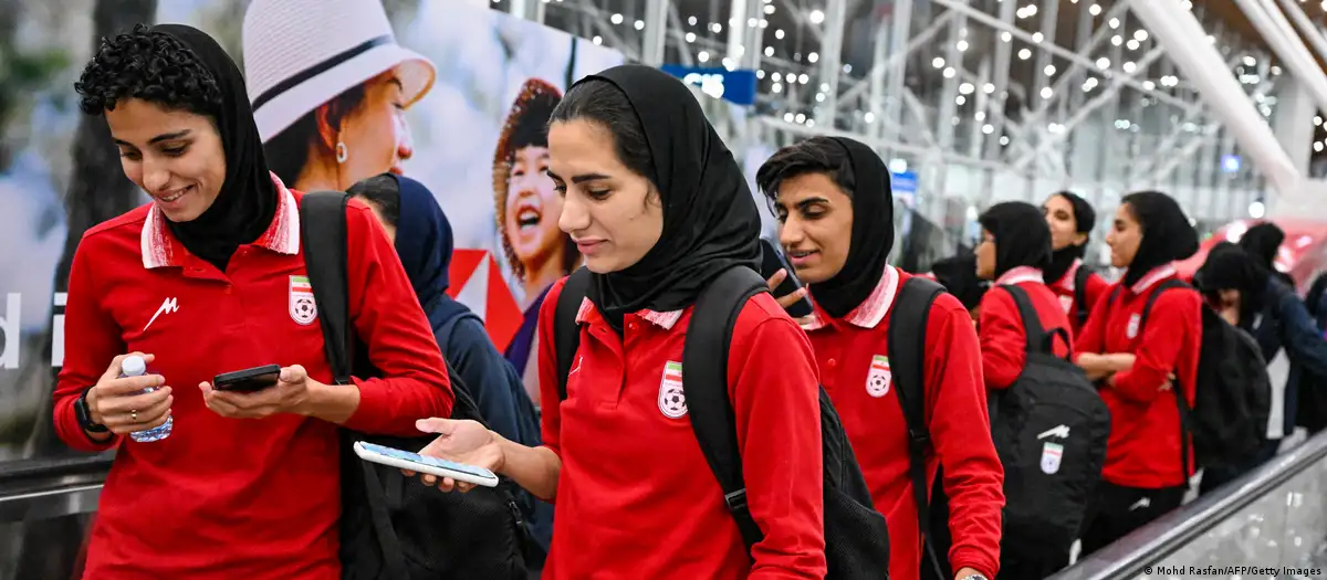 澳大利亚作为东道主举办了亚洲杯女足比赛。出场比赛前,伊朗队员在奏国歌时保持沉默。媒体将这样的做法诠释为对伊朗伊斯兰共和国的反抗。人们担心她们回国后可能面临迫害。
