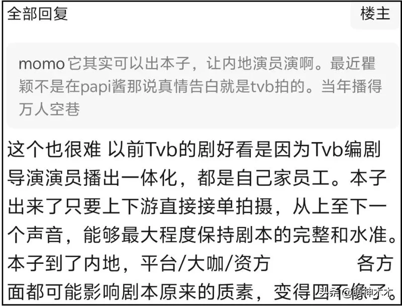 非大湾区的网友也许对TVB境遇体会不深刻,正好来看看知情人怎么说的吧。