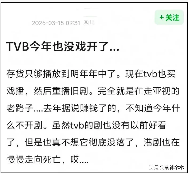 人无远虑,必有近忧啊!原来是网友发现,2026年都过去3个多月了,TVB还没有开拍哪怕一部新剧。