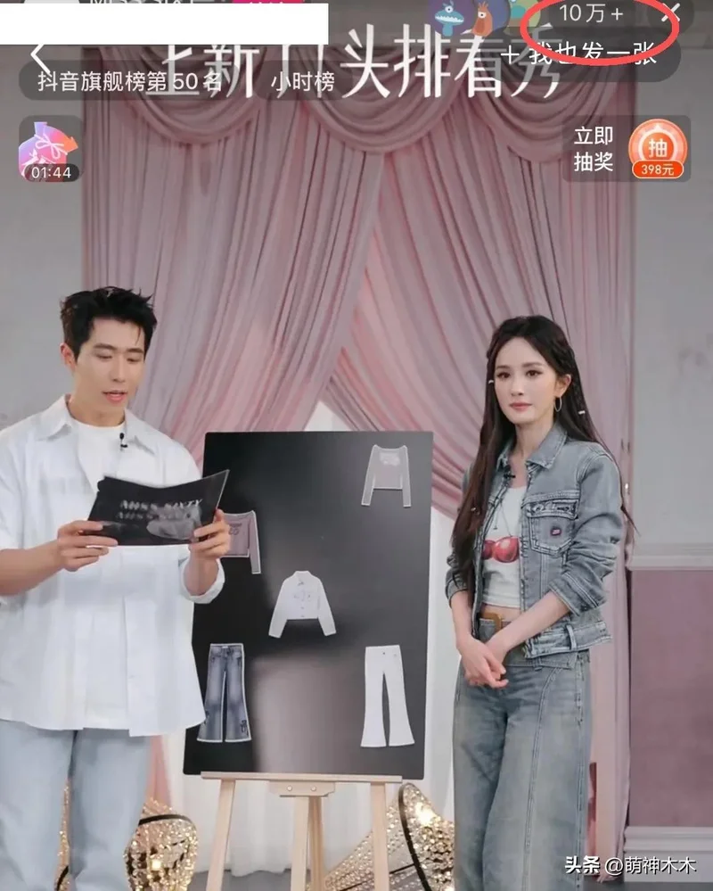 生图被大篇幅嘲讽后,粉丝们开始拿人气转移视线,比如晒杨幂的活动线下图以及直播间人数,从数据上来看,杨幂的人气还处在高峰。线下商场人流围了几圈,线上观看数据也有10万+,作为一个老牌流量,相当不错。