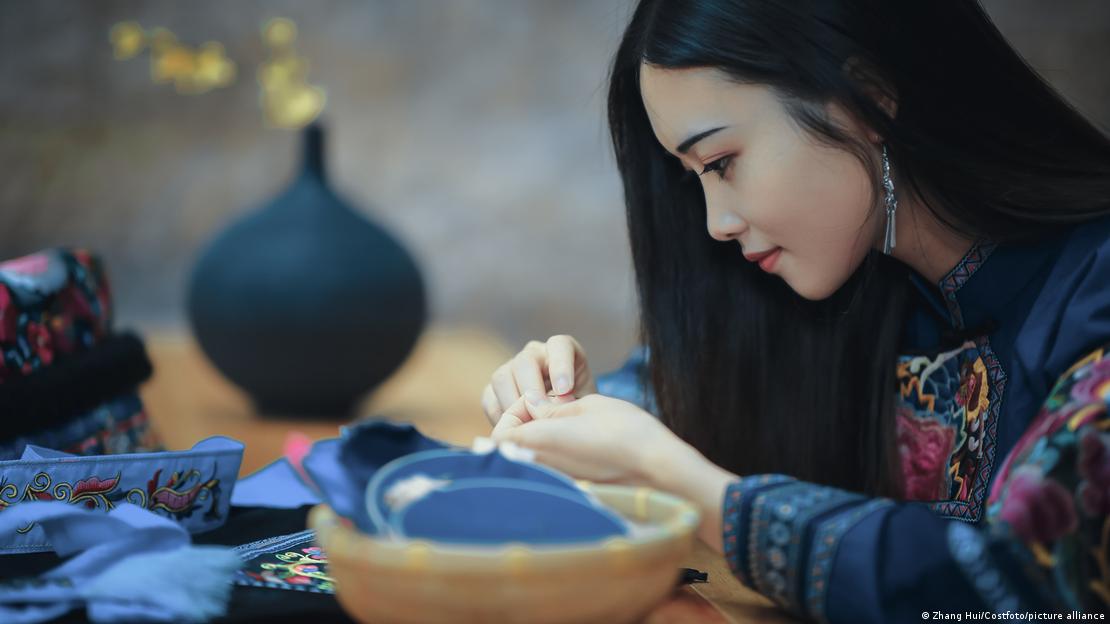 中国贵州布依族一女子在做传统手工。图像来源: Zhang Hui/Costfoto/picture alliance