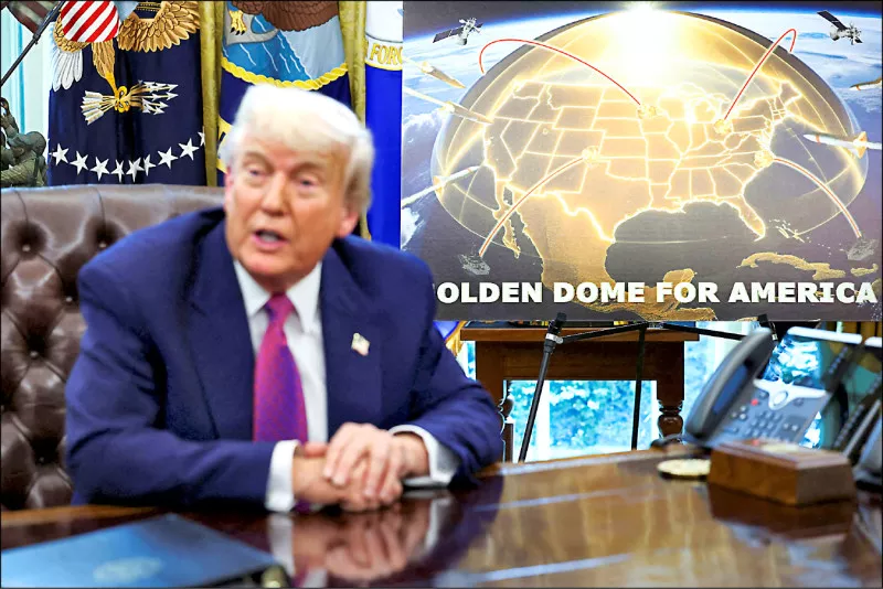 美国总统川普去年五月在白宫宣布美国将建立金穹导弹防御系统。(路透档案照)