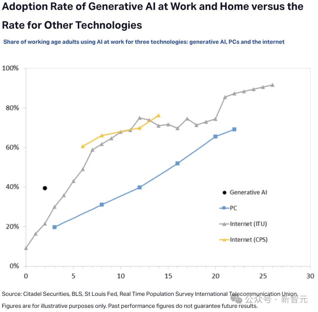 说明AI的普及路径,和当年的个人电脑、互联网一模一样,它们走的都是一条极其漫长且波折的S曲线。