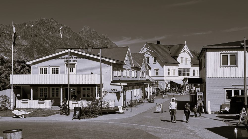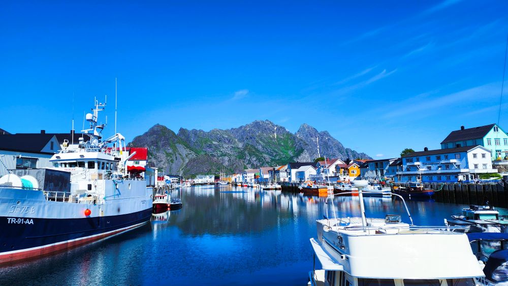 Henningsvær到了。Henningsvær 的名字来自“Henning”与“vær”(渔场),意思是“Henning 的渔场”。这很贴切:它的灵魂从来不是旅游,而是海。
