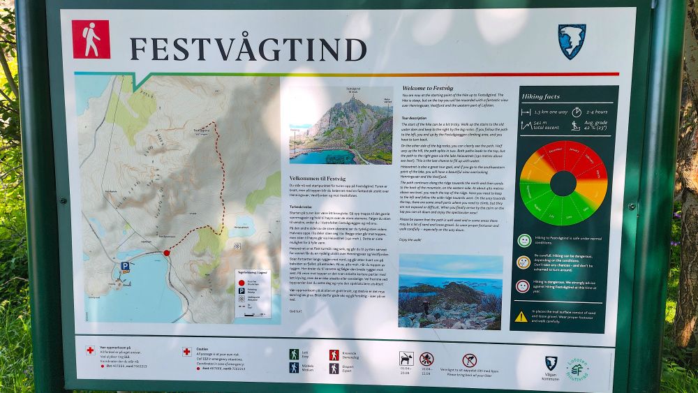 Festvågtind是短但极陡的路线, 半山1.3km,山顶2.3km, 爬升541米。