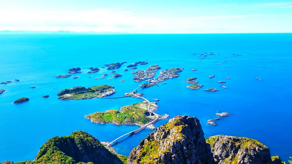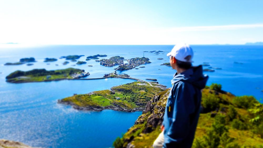 从 Festvågtind 俯瞰 Henningsvær,你会意识到:这些岛屿的形状,是时间的仿宋体。岛屿之间的桥,是人类的针与线, 小心翼翼地把岛屿缝在了一起。其实, 这个世界早已破烂不堪, 但总还有人愿意在默默地修修补补。