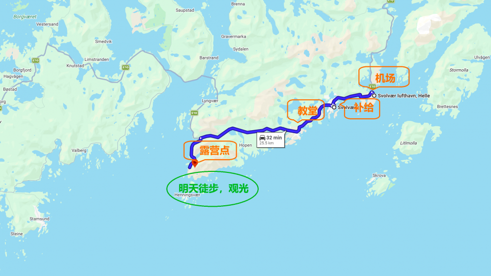 这是今天和明天的计划, 明天爬Festvågtind, 再看看Henningsvær