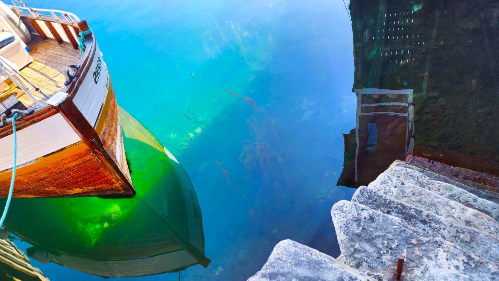 港湾的小船轻轻摇着,木板反射着冷光,像一封写好却没有寄出的信。它们在风中安详地荡漾着,像那些早已找到归宿的人,轻轻靠着世界的怀抱。