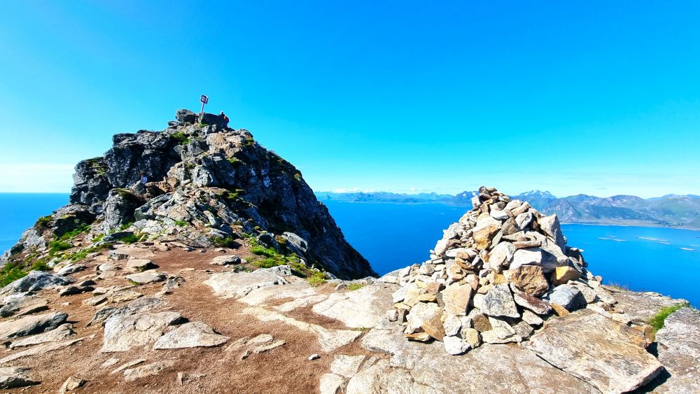 Festvågtind 的路线短,但陡。经年的徒步, 依然走得满身是汗,鞋底在碎石上打滑,在半山腰的风口,我停下来喘气。风把我的外套吹得啪啪响:“你这个过客还想看风景?可以。但先把这段坡走完。”