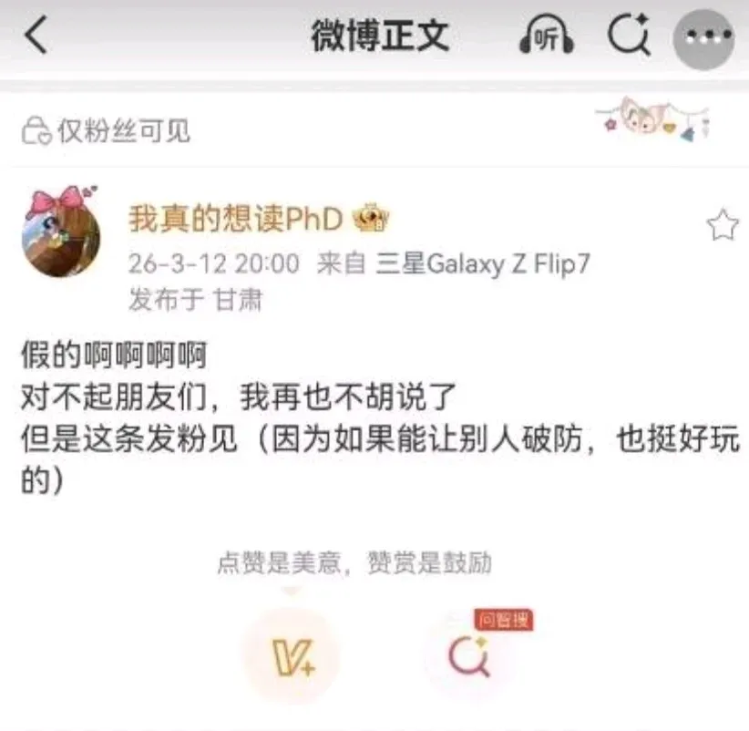 先说说大家最关心的“上岸”真假。有眼尖的网友直接扒出,杨景媛发博的时候,公务员笔试压根还没开始!这波操作直接被吐槽是“纯纯胡诌”。结合之前的评论来看,不少人觉得她这是玩了“狼来了”的套路,边心心念念想考公,又怕自己的过往被举报影响前程,于是频繁放烟雾弹,用真假掺半的消息让关注者疲劳,等大家放松警惕了,再突然来个“上岸”博眼球。