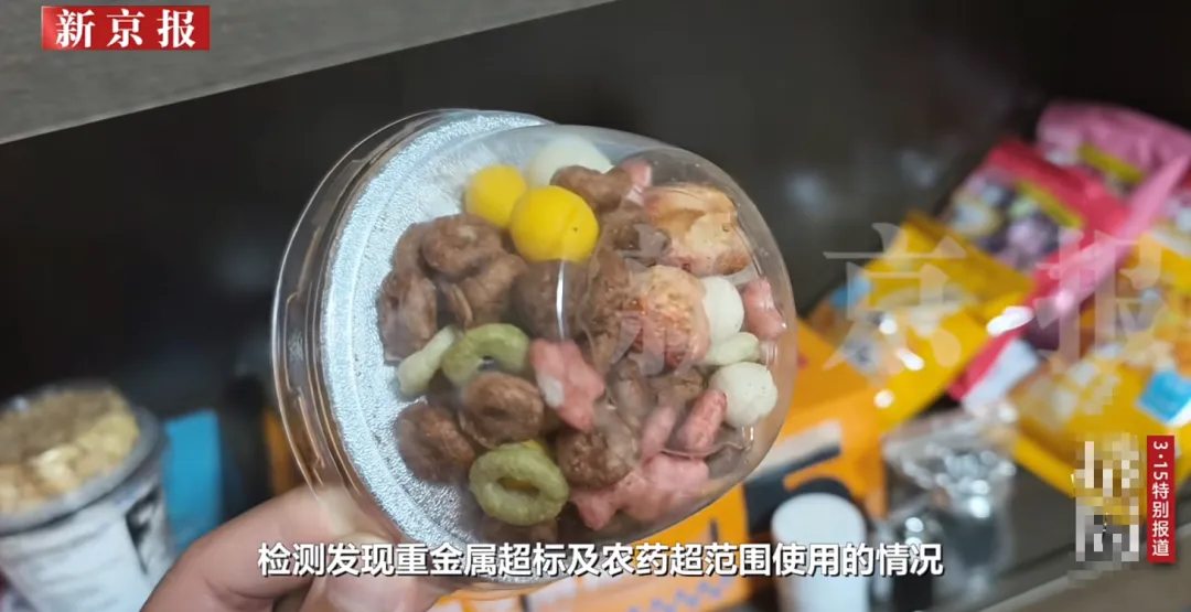 再比如冻干草莓,一个企业采购的21吨货当中,不但含有20多种超量的农药残留、检出高毒农药克百威,还有重金属镉,这东西的毒性极强,人体若长期积累镉会引发慢性中毒,损害肾脏和骨骼,2012年就被世卫组织列为一类致癌物。