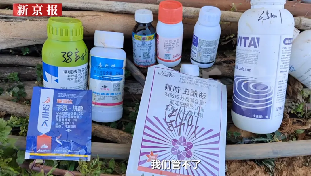 再好比冻干草莓,记者溯源到草莓种植基地,田间地头随处可见被丢弃的禁用农药瓶子,种植户为了保产量,肆无忌惮地喷洒敌敌畏、毒死蜱。更可笑的是,因长期滥用农药,害虫早已产生抗药性,当地农资店直言“农药基本失效”,种植户照喷不误,加量喷。