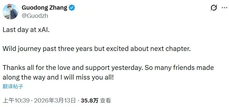 随后,张国栋在X平台上发帖确认了自己的离职。另一位联合创始人戴子航也于当周早些时候离开了公司。