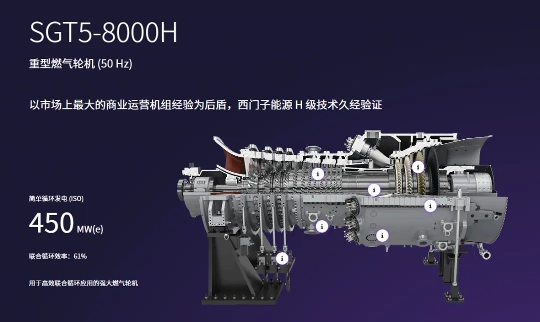 G/H级呢?相当于星耀、王者段位了,这是西方巨头的“杀手锏”。比如三菱的G级,温度能干到了1500℃;西门子的H级,温度更高,它们的联合循环效率普遍突破60%,最高达64%,主力支撑大型发电、三联供与超算中心,是高效与稳定的首选。