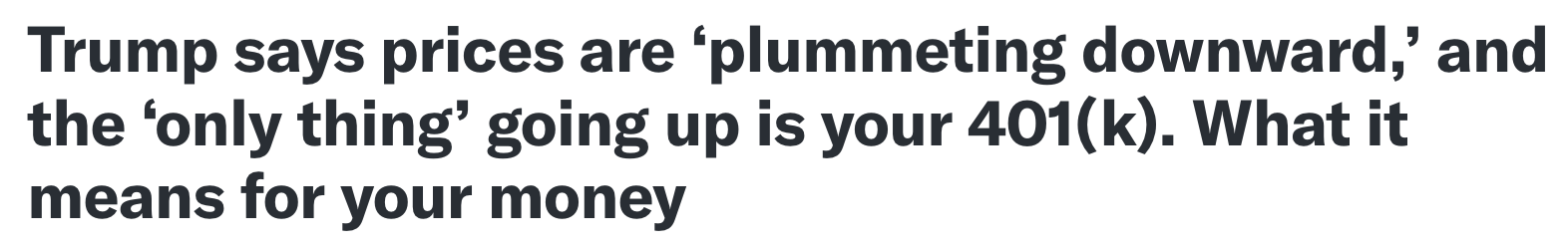 川普宣布:物价暴跌,401(k)猛涨叶子
