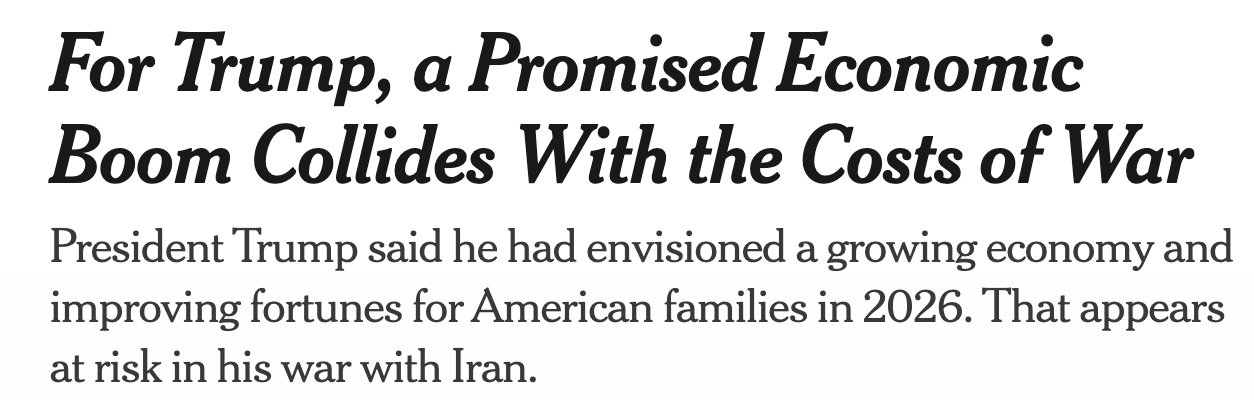 据3月15日报道,川普总统此前曾多次表示,美国经济正迅速好转,“通胀正在被压制,股市和401(k)账户持续上涨”。然而,随着美国能源价格快速上涨,经济前景开始出现新的不确定性。油价飙升不仅影响普通家庭的日常开支,也让经济学家担忧,美国原本被寄予厚望的2026年经济增长可能面临“新的挑战”。