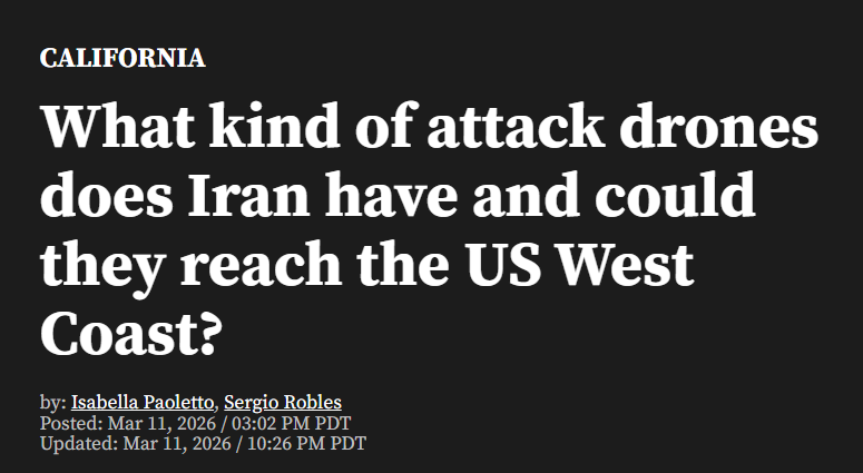 不过,从地理距离来看,伊朗无人机直接从本土飞抵加州几乎不可能。