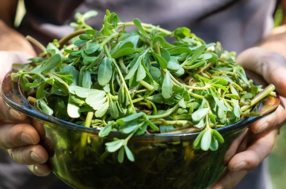 马齿苋(Portulaca oleracea),一种广布于中国野菜,一般它的茎会平卧在地上,分出多个枝杈,叶片互生,椭圆形的绿色叶子尖端有点钝,一般开黄色的小花。马齿苋的茎和叶都可以作为野菜食用,焯水凉拌,清炒、做汤味道都还不错,也可以做馅食用。