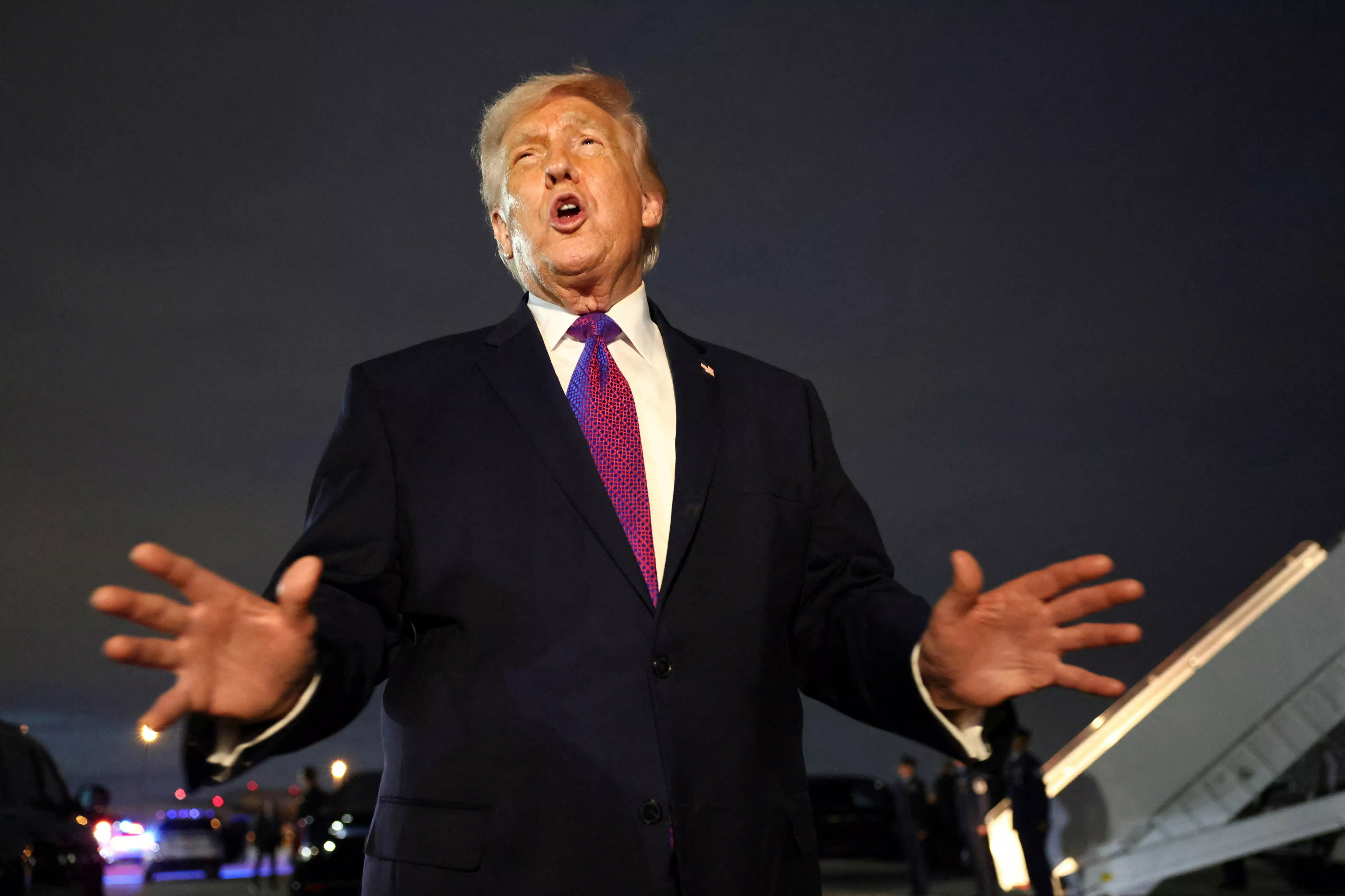 2026年3月11日,美国总统特朗普抵达美国马里兰州安德鲁斯联合基地后接受媒体采访。 (Reuters)