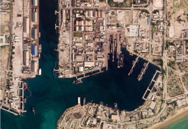 图为位于伊朗南部、霍尔木兹海峡的阿巴斯(Bandar Abbas)军事港口被美以袭击,图片摄于3月4日。 (法新社)