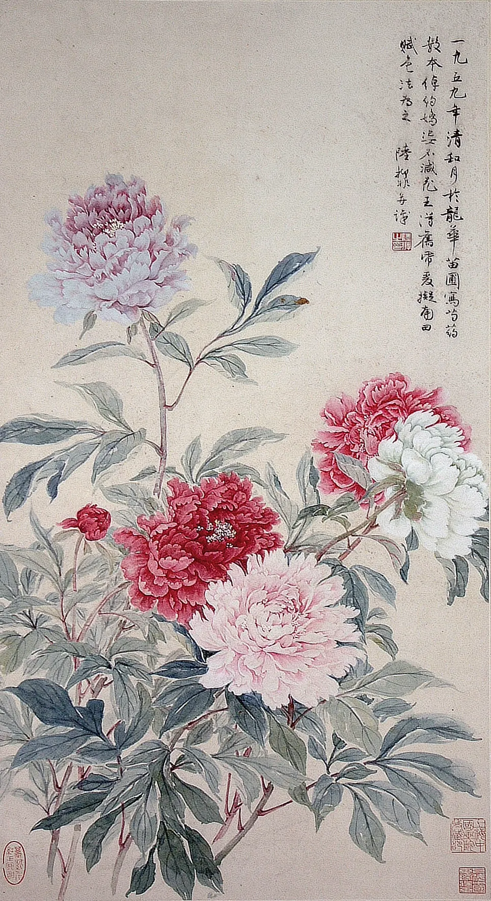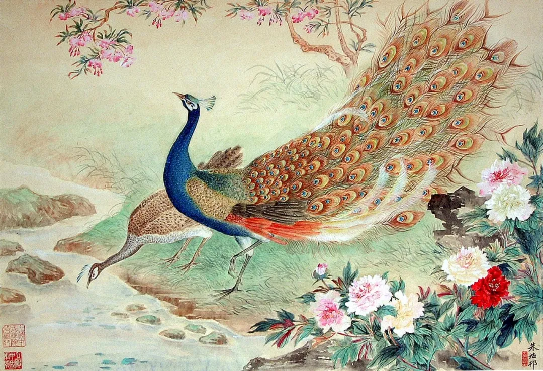 孔雀·牡丹 朱梅村 1973年 54.5×80cm
