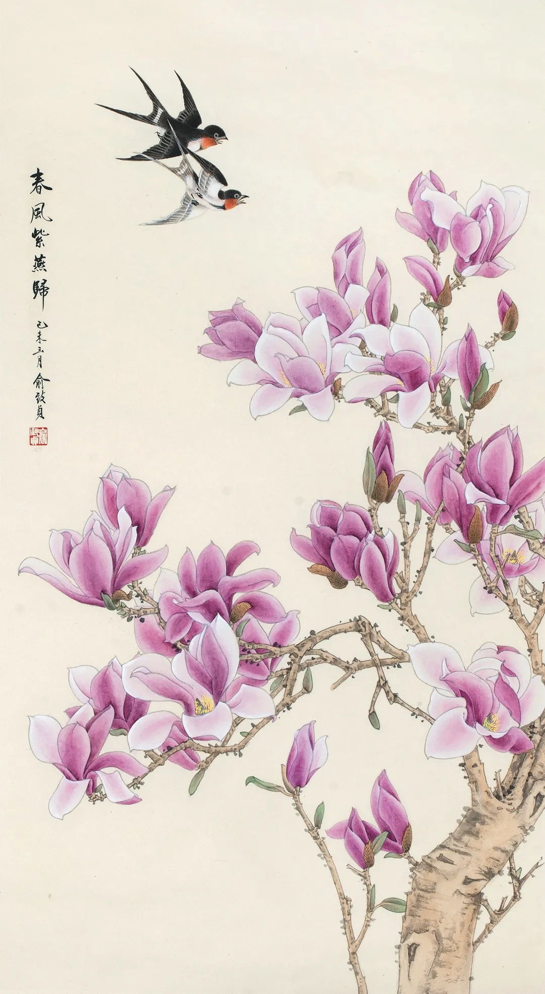 春风紫燕归 俞致贞 己未(1979年)作 100×55 cm