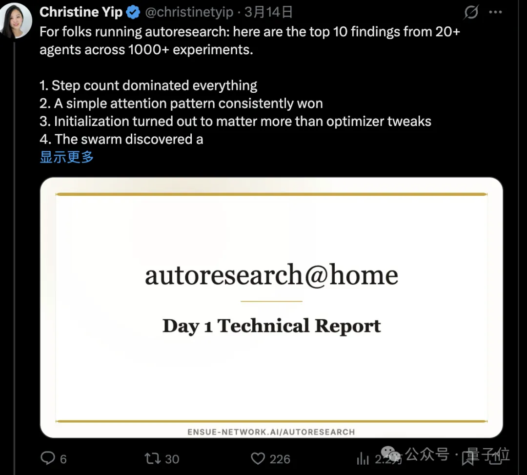 项目发起者Ensue创始人Christine Yip公布了十大发现,除了智能体角色分化之外,还有很多涉及最底层的AI训练技术细节。