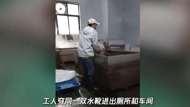 暗访镜头下的画面,堪比“食品安全恐怖片”。涉事工厂“四川川牛福食品有限公司”的车间里,工人一边蒸煮毛肚一边肆意抽烟,烟灰就这么直直落入食材;刚出锅的高温毛肚,被直接倾倒在破损积水、满是碎屑的脏污地面上冷却;更令人作呕的是,工人穿着同一双水靴,自如穿梭于厕所和加工车间,将严重的交叉污染风险直接“踩”进了产品里。