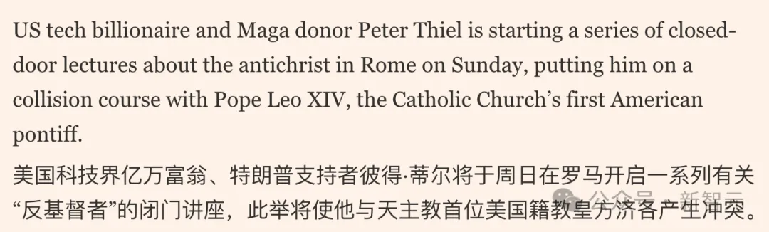 黑暗启蒙运动在硅谷的标志性人物——彼得·蒂尔,将于这几天在罗马开展一系列绝密讲座,驳斥教皇观点,反对 AI 监管,这或许标志着 AI 竞争的终局较量已经拉开帷幕。各大巨头想要争夺的标的,已经超越了算力规模与爆款应用。他们真正在抢夺的,是对「未来秩序」的最终解释权。