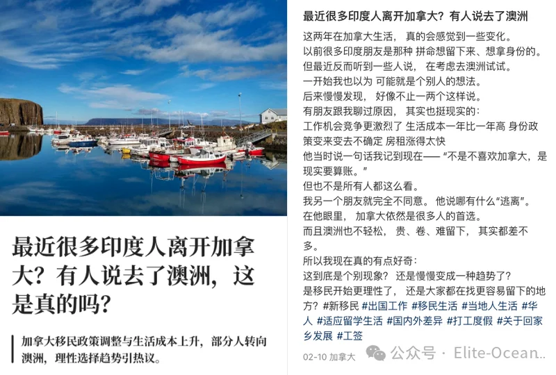 一条在加拿大的华人帖子直接刷屏,他说:“这两年在加拿大生活,真的会感觉到一些变化”,还有人说“以前很多印度朋友是那种 拼命想留下来、想拿身份的。但最近反而听到一些人说,在考虑去澳洲试试。”!