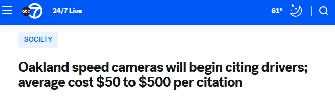 罚款金额将在50美元至500美元之间,具体取决于违规的严重程度。如果奥克兰对所有收到警告通知的14万多名司机都进行罚款,罚款总额至少将达到700万美元。