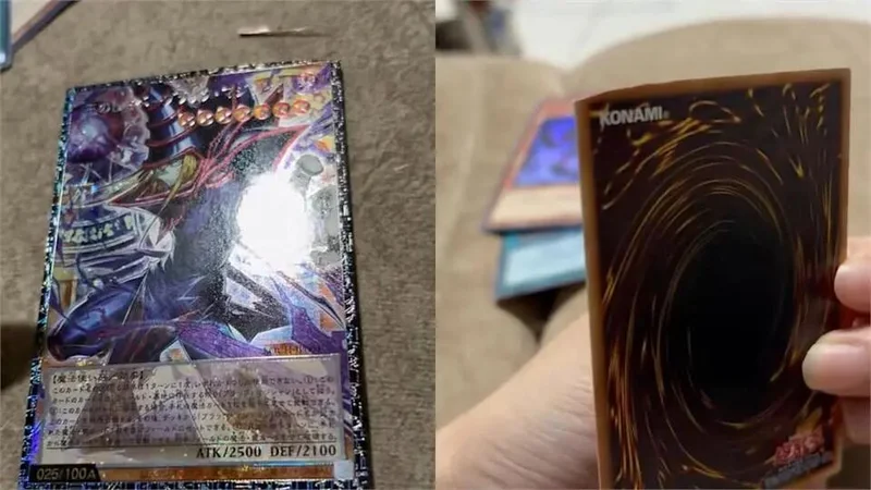 他抽到的,正是那款全球限量100张,编号为25的“超框黑魔导”!从流出的照片和视频里能清楚地看到,卡片的右上角,硬生生被剪掉了那么一小截,大概也就米粒那么大。