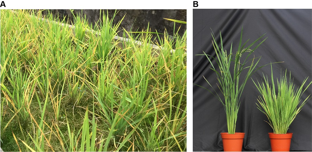“最初的线索确实来自田间和实验中的表型观察。”吴建国说,他们敏锐地注意到,这些症状与独脚金内酯激素信号失调的突变体的典型表型高度相似。独脚金内酯是一种重要的植物激素,主要调控植物的分枝、株高等发育性状。