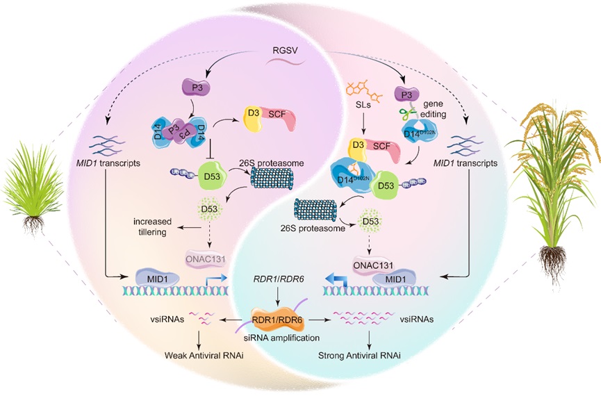 独脚金内酯信号介导水稻抗病机制及病毒反防御机制模式图。受访者供图