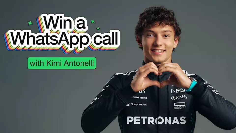 去年梅赛德斯车队和赞助商 WhatsApp 联动,活动内容是粉丝注册 WhatsApp,就有机会抽奖,奖品是和安东尼利通电话……