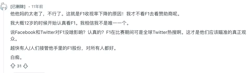 车迷对伯尼的不满,也与日俱增。在他们看来,F1越来越跟不上时代,都是拜老头所赐: