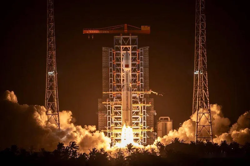 长征八号甲运载火箭在发射场点火升空