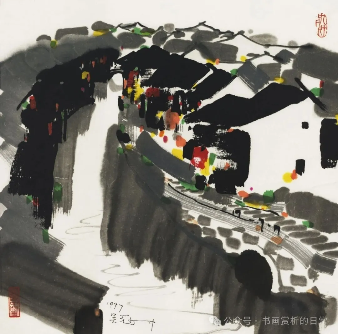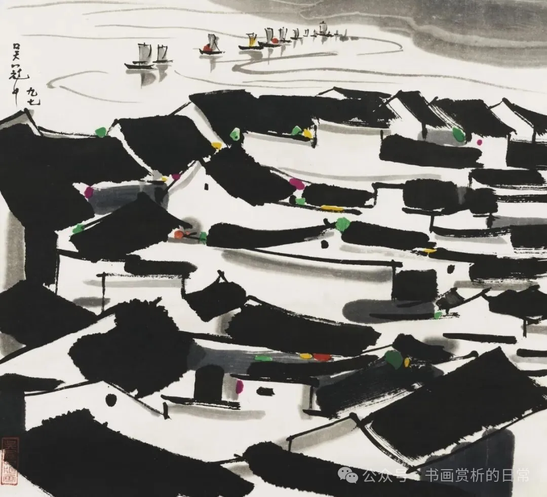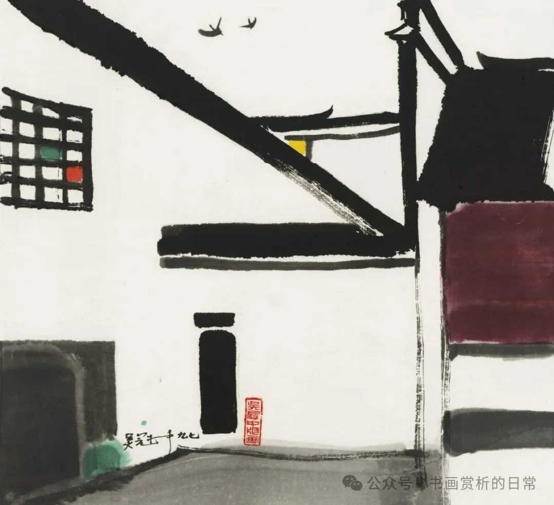吴冠中(1919-2010)江苏宜兴人,追求艺术的形式化,中国现代绘画史上极具代表性和争议的艺术大师。 江南民居的建筑辨识度很高,粉墙黛瓦,是吴冠中的家乡,是吴住过的房子……,有其儿时的记忆,精神的寄托。吴冠中对江南民居的表现,删繁就简,将江南民居提炼为点线面的组合,白墙、屋顶为面,窗为点,房屋轮廓为线,也符合吴冠中形式美的艺术追求。 图片来自网络 《1982年》 《1982年》 《临河人家》 《...