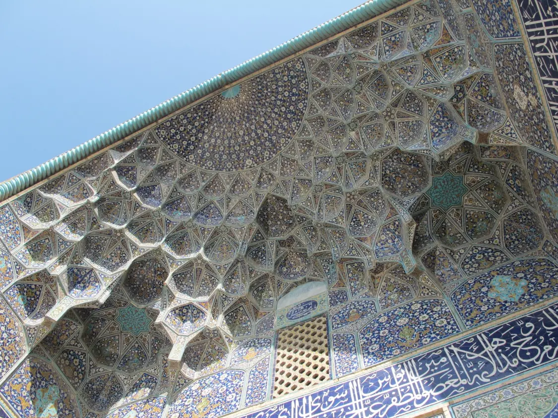 同时,伊朗建筑业发明出一种独特的“花拱”,用于清真寺的穹顶门等处,并且,这些花拱还一律贴上蓝绿彩砖拼合图案,既有一种打破物理空间的梦幻感,又气魄非凡。代表杰作之一便是伊斯法罕王侯广场畔的王家清真寺,站在寺前,你会忽略一切观念的隔阂,忘记所有是非,为那高穹的单纯的美摄住。如果你想体会“爱上一座门”是什么人生层次,就去那里站一站。