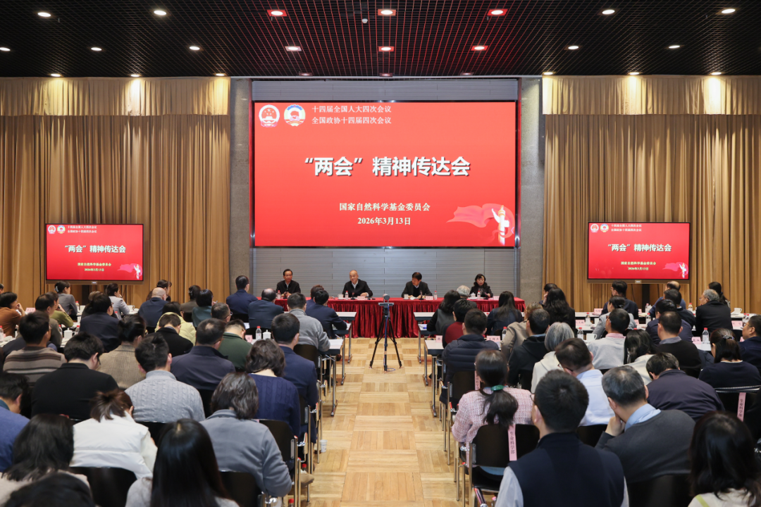 2026年3月13日,国家自然科学基金委员会党组书记、主任窦贤康主持召开全委干部职工会议,传达学习全国两会精神,部署贯彻落实工作。全国人大常委李静海传达十四届全国人大四次会议精神。全国政协委员、自然科学基金委党组成员、副主任陆建华,全国政协委员、自然科学基金委副主任吴骊珠传达全国政协十四届四次会议精神。