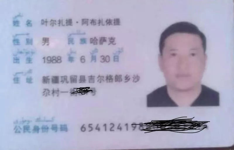根据文件内容,叶尔扎提·阿布扎依提出生于1988年6月30日,哈萨克族,农民,户籍所在地为新疆伊犁州巩留县吉尔格郎乡沙尕村一街84号。材料称,他在2018年1月被送入当地“教育转化中心”,同年4月13日被巩留县公安局刑事拘留,4月17日经检察机关批准逮捕,并被关押在巩留县看守所。