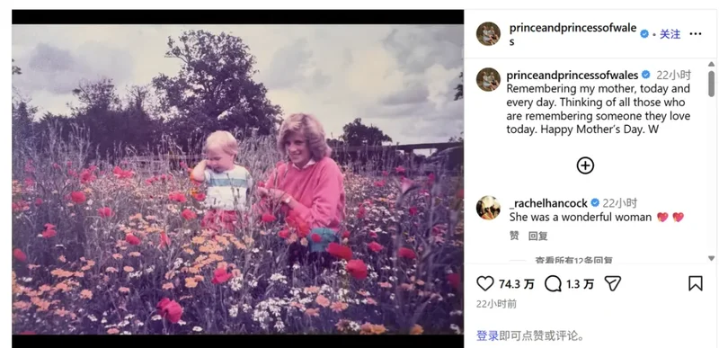 这个照片温馨又日常,不像是王室,只是寻常母子的春日亲昵瞬间。
