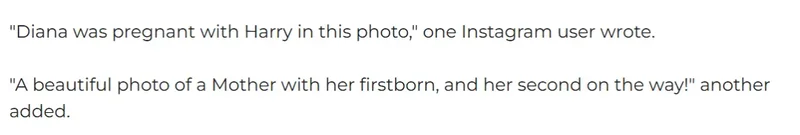 这张照片,也让不少英国王室粉丝很唏嘘——其中一些人注意到,戴安娜王妃拍摄这张照片时可能已经怀上了威廉王子的弟弟哈里王子(哈里出生于1984年9月,这张照片拍摄于1984年)。