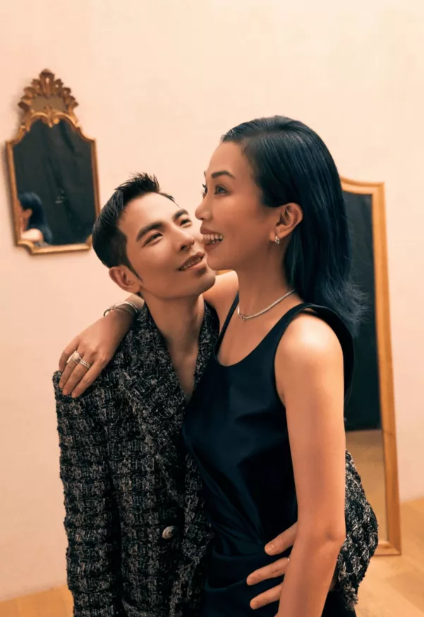 萧敬腾陪老婆过情人节!夫妻俩笑起来像姐妹,同款发型分不出男女,不管是姐妹还是夫妻,都是彼此的爱人了。