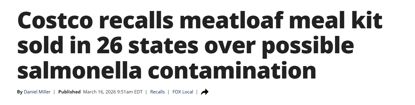 据3月16日报道,Costco近日宣布召回一款“即食肉饼套餐(meatloaf meal kit)”,原因是其中一项原料可能受到沙门氏菌(Salmonella)污染。