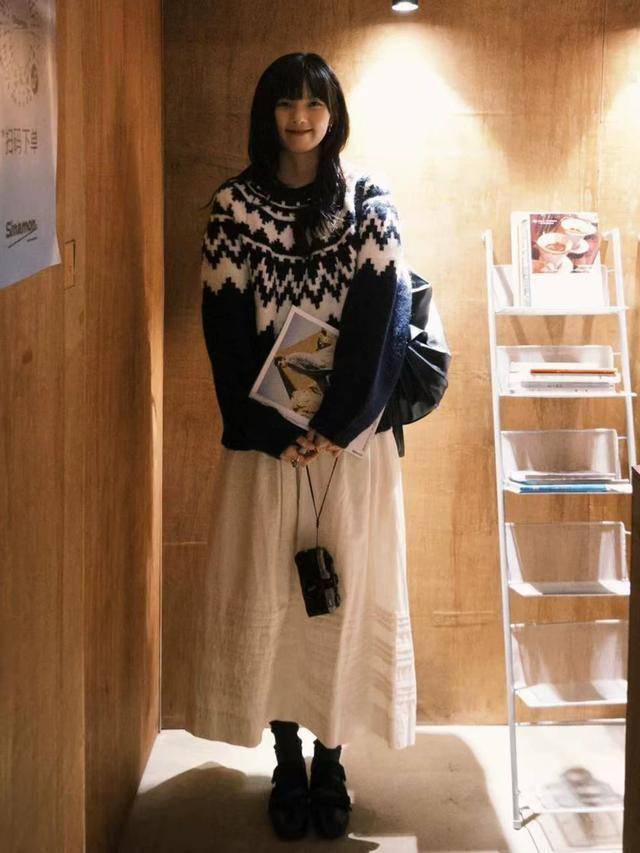 自带复古感的费尔岛毛衣,和小白裙也是绝配,一繁一简,既能化解平庸,也能丰富造型。