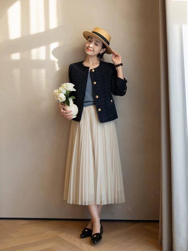 优雅永不过时,当小香风外套邂逅银白色百褶裙,无需繁杂的装饰,便可以烘托出独有的好气质。